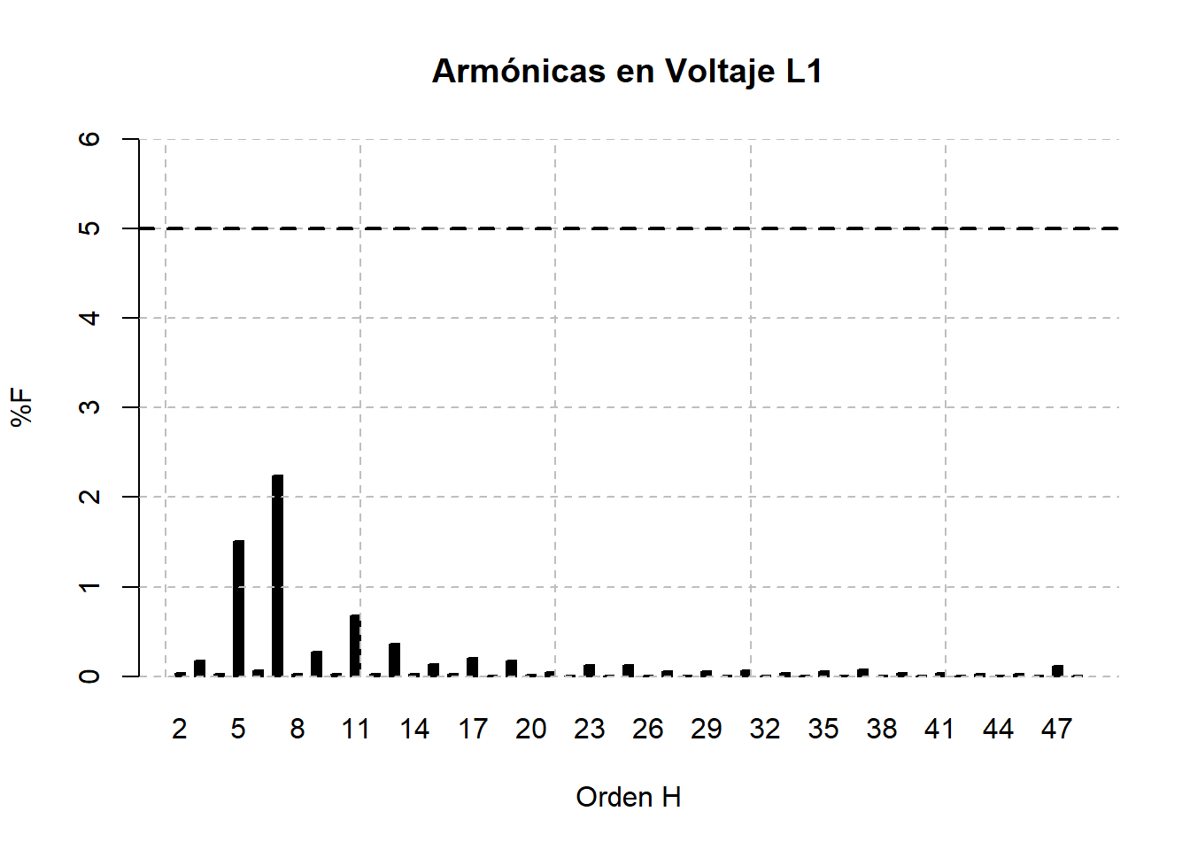 Los desbalances de la tensión y de la corriente se mantuvieron con valores bajos, con valores máximos de 4.91% para la corriente y 0.49 para la tensión, lo que indica que la planta está trabajando de manera balanceado al igual que la tensión.